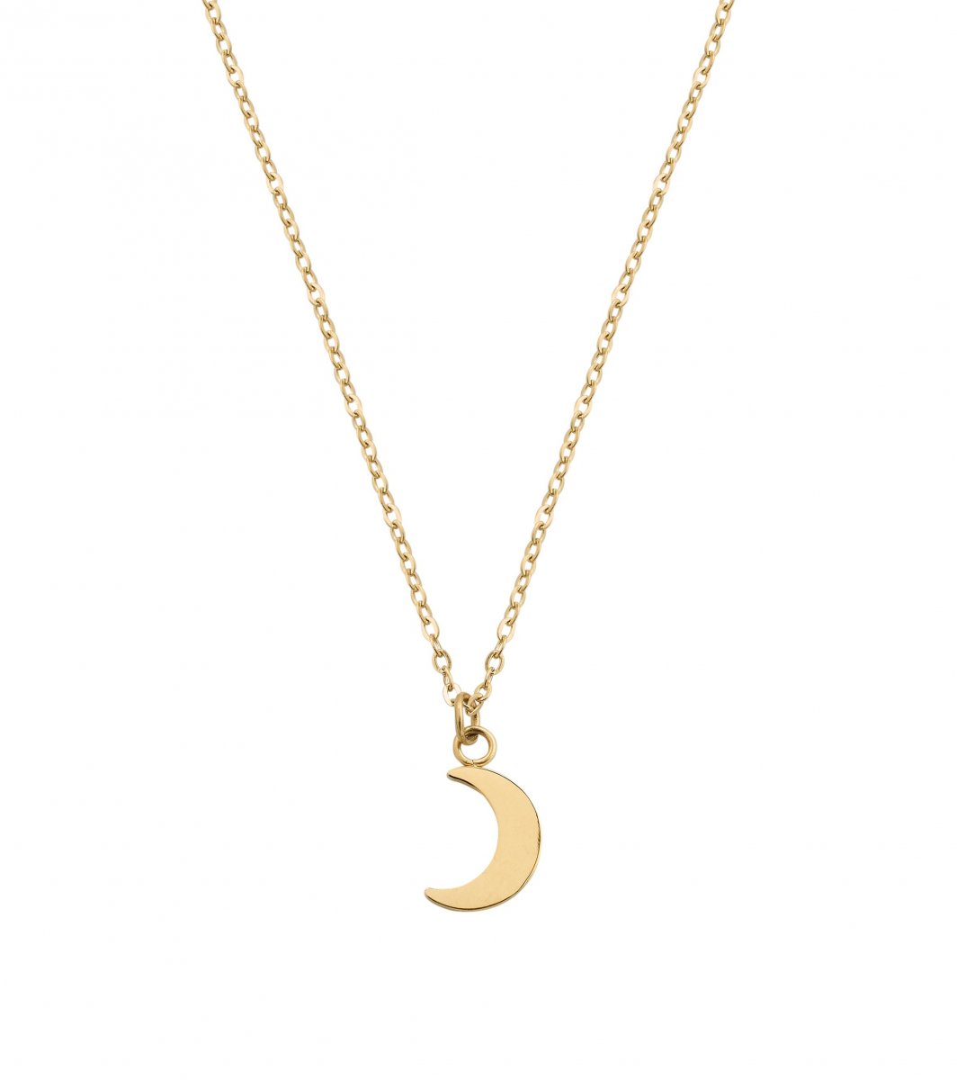STORLEK PÅ MÅNEN 6X8 MM, KEDJANS JUSTERBARA LÄNGD 39-42 CM. BLANK 14K GULDPLÄTERING PÅ ROSTFRITT STÅL. NICKELSÄKERT.