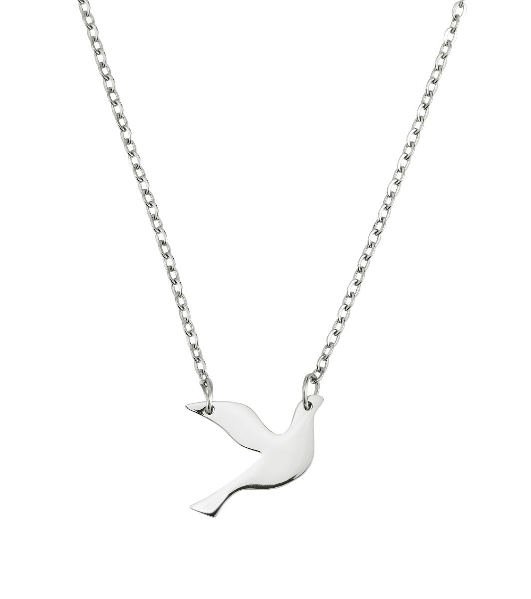 I fina serien Dove har vi lyft fram symbolen för fred! Ett vackert halsband, här med en liten duva. Dove halsband har både en blank och en matt sida och kommer i flera färger, här i stål.